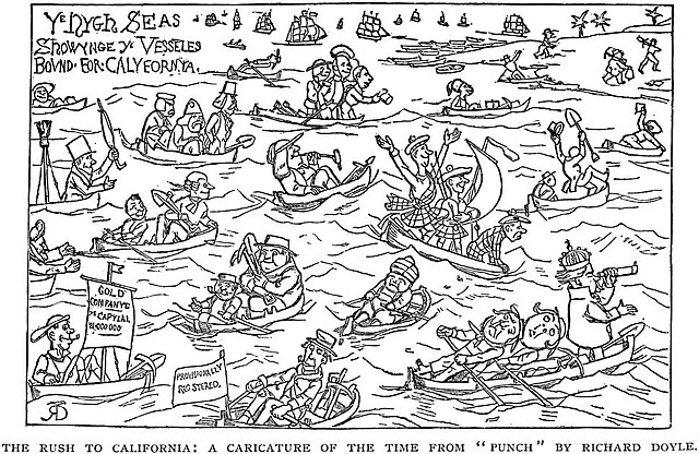 The prospectors who arrived in 1849 became known as the “Forty-niners” or simply “49ers.” Before the Gold Rush, California had approximately 14,000 non-Native American residents. By 1852, that number had exploded to over 250,000.
