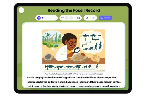 This engaging middle school science passage explores how scientists interpret the fossil record to reveal Earth's histor...