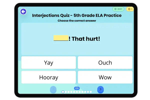 Build language skills in elementary students with our Interjections games. These resources guide children through recognizing and using interjections in an interactive and printable format, enhancing their language proficiency.