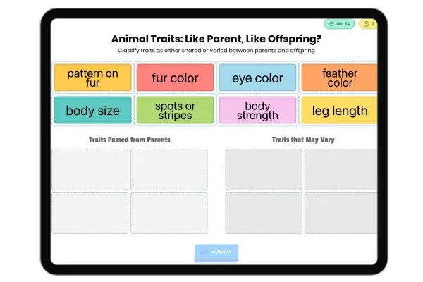 In the 'Animal Traits: Like Parent, Like Offspring?' word sort activity aligned with 1-LS3-1, students examine similarit...