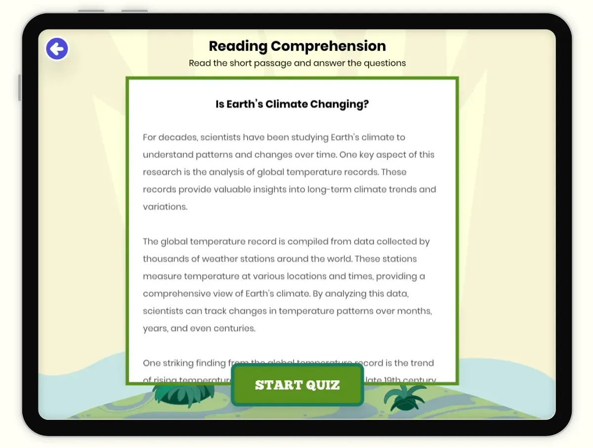 The passage 'Is Earth’s Climate Changing?' explores how scientists study Earth's climate through global temperature records. These records, collected from weather stations worldwide, reveal the trend of rising global temperatures since the late 19th century, a phenomenon known as global warming. This warming is primarily caused by human activities like burning fossil fuels and deforestation, which increase greenhouse gas emissions. The consequences include melting ice caps, rising sea levels, and biodiversity loss. Understanding climate change is essential for developing mitigation strategies to protect the environment and address the risks associated with these changes.