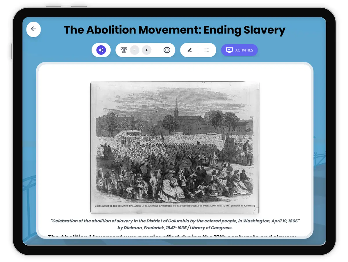 This rigorous world history reading passage examines the Abolition Movement of the 19th century, focusing on the fight to end slavery in the Americas and Europe. Students will learn about the historical context of slavery, the rise of abolitionist leaders like Frederick Douglass and Harriet Tubman, and the powerful moral and political arguments that fueled the movement. The passage includes examples from primary sources, key dates, and the impact of emancipation on society. Activities include comprehension questions, writing prompts, graphic organizers, and a timeline to support critical thinking and standards-based learning. Audio read aloud and Spanish translation are available. This resource aligns with CA HSS 7.7 and 8.7, as well as Common Core ELA literacy standards, making it an ideal choice for world history classrooms.