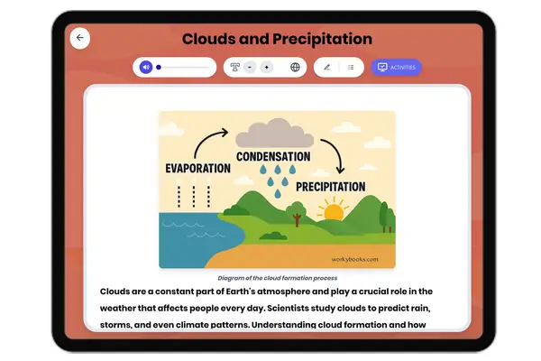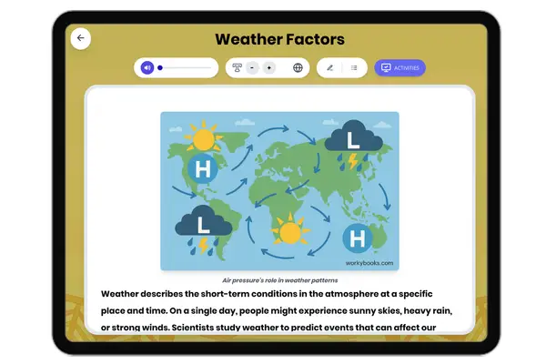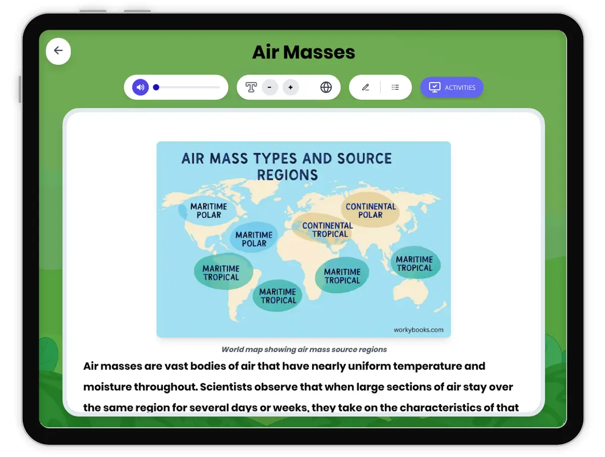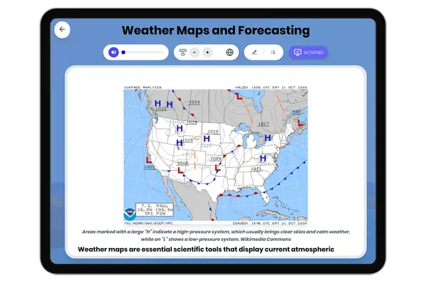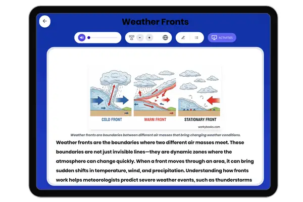 This passage provides a comprehensive explanation of air masses, their formation, classification, and their critical role in shaping weather patterns, especially in North America. Aligned with NGSS standard MS-ESS2-5, it integrates scientific thinking by showing how scientists observe, categorize, and analyze air masses to predict weather events. Students learn the mechanisms by which air masses acquire temperature and moisture characteristics and how their movement leads to observable weather changes. The passage also explores the interaction of different air masses and the real-world implications for daily weather, agriculture, and society. Key academic vocabulary is clearly defined, and the resource includes a glossary, Spanish translation, differentiated version, multiple-choice questions, writing prompts, and graphic organizers. This science text is audio integrated, making it accessible for diverse learners and supporting English Language Learners as they explore the dynamic nature of Earth's atmosphere.