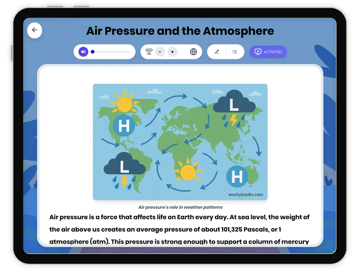 This passage for grades 6-8 explores the concept of air pressure in the atmosphere, directly aligning with NGSS MS-PS2-2 standards. Students will discover how atmospheric pressure results from the weight of air above us, how it is measured with barometers, and why it decreases as altitude increases. The passage examines real-world effects such as breathing at high altitudes, airplane cabin pressure, and the role of air pressure in weather patterns. It provides scientific explanations, data, and examples, and integrates key academic vocabulary in context. Activities include multiple choice questions, writing prompts, and graphic organizers to deepen understanding. Audio integration supports accessibility for all learners. This resource is ideal for middle school classrooms seeking to build scientific literacy on core physical science concepts.