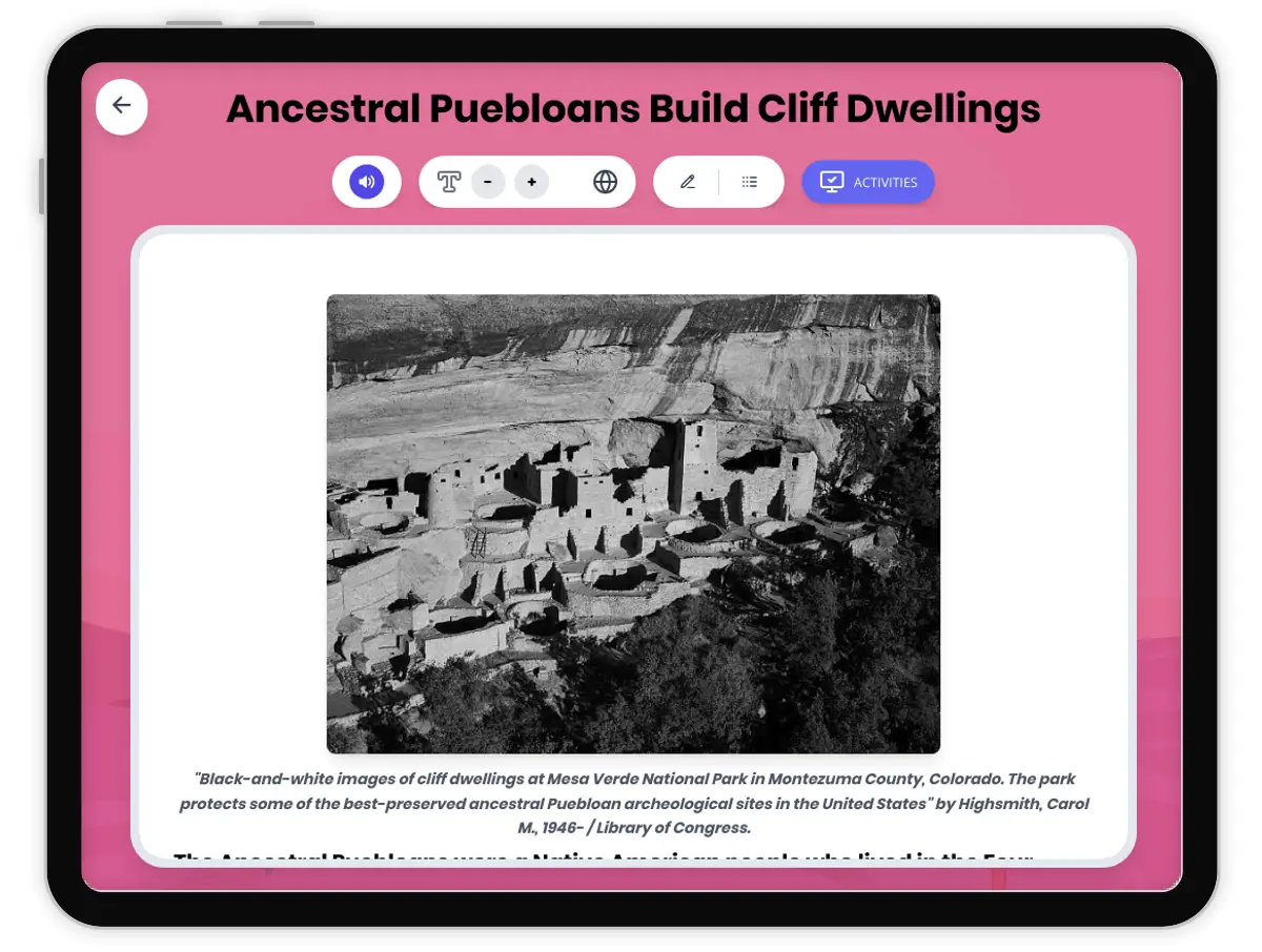 Ancestral Puebloans Build Cliff Dwellings — Reading Comprehension