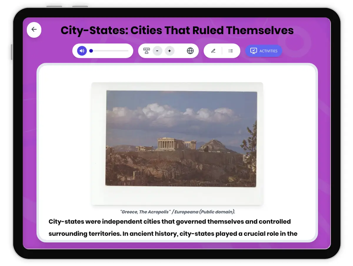 This history reading passage explores the development and significance of city-states in ancient civilizations, focusing on Greek polis and Mesopotamian cities. Students will learn about the concept of self-governing cities, their social hierarchies, daily life, and the influence of geography. The passage highlights archaeological evidence and primary sources, and includes a comparison between different civilizations. Activities include a multiple-choice quiz, graphic organizers, timeline, and writing prompts. This resource provides read aloud audio and a Spanish translation, supporting diverse classrooms. Aligned with CA HSS 6.2 and CCSS RI.6.3, it helps students analyze historical cause and effect, continuity and change, and the broader impact of city-states on world history.