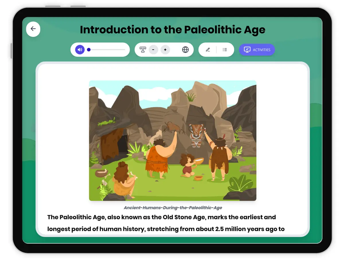 This engaging passage explores the lives and achievements of ancient humans during the Paleolithic Age, focusing on their adaptation, survival strategies, and cultural development. Students will examine archaeological evidence, analyze cause-and-effect relationships, and understand the significance of early human innovation. The content aligns with CA HSS 6.1.1 and CCSS RH.6-8.1, supporting students in developing historical thinking skills, reading comprehension, and academic vocabulary. Included activities feature a timeline, multiple-choice quiz, writing prompts, and graphic organizers to deepen understanding. The passage is available with read aloud audio and Spanish translation, making it accessible for a diverse classroom. Key topics include early human migration, use of tools, social organization, and the impact of geography on daily life. Perfect for world history units on ancient civilizations.