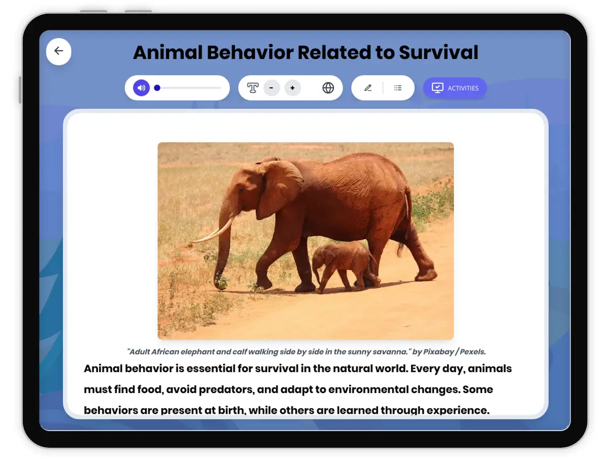 This passage, aligned with NGSS standards MS-LS1-4 and MS-LS1-5, explores the complex and fascinating world of animal behavior as it relates to survival. Students will discover the differences between innate behaviors, such as reflexes, migration, and hibernation, and learned behaviors, including hunting techniques and tool use. The text explains how internal and external cues trigger behaviors and how natural selection shapes these responses over generations. Rich examples—such as bird migration, salmon spawning, and camouflage—help students connect scientific concepts to real-world situations. The passage integrates academic vocabulary, highlights cause-and-effect relationships, and encourages scientific thinking about adaptation and survival. Glossary, quizzes, writing prompts, graphic organizers, and Spanish translations are included for accessibility. Audio integration supports diverse learners. This resource is ideal for middle school classrooms and supports inquiry into how organisms adapt their behaviors for survival.