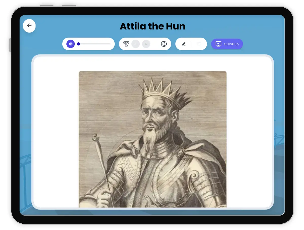 This engaging world history reading passage examines Attila the Hun, a powerful and feared ruler during the Middle Ages. Students will learn about Attila's rise to power, his military strategies, and his dramatic invasions of the Roman Empire. The passage explores key historical events, such as the Battle of the Catalaunian Plains, and considers the social and political effects of Attila's leadership. It covers the geographic context of the Huns' migration, their impact on Roman society, and what happened after Attila's sudden death. This resource is aligned with CA HSS 7.1 and CCSS RI.6.3, making it ideal for history and ELA skill development. It includes a read aloud audio, Spanish translation, differentiated reading versions, vocabulary support, comprehension activities, and graphic organizers for classroom or independent study.