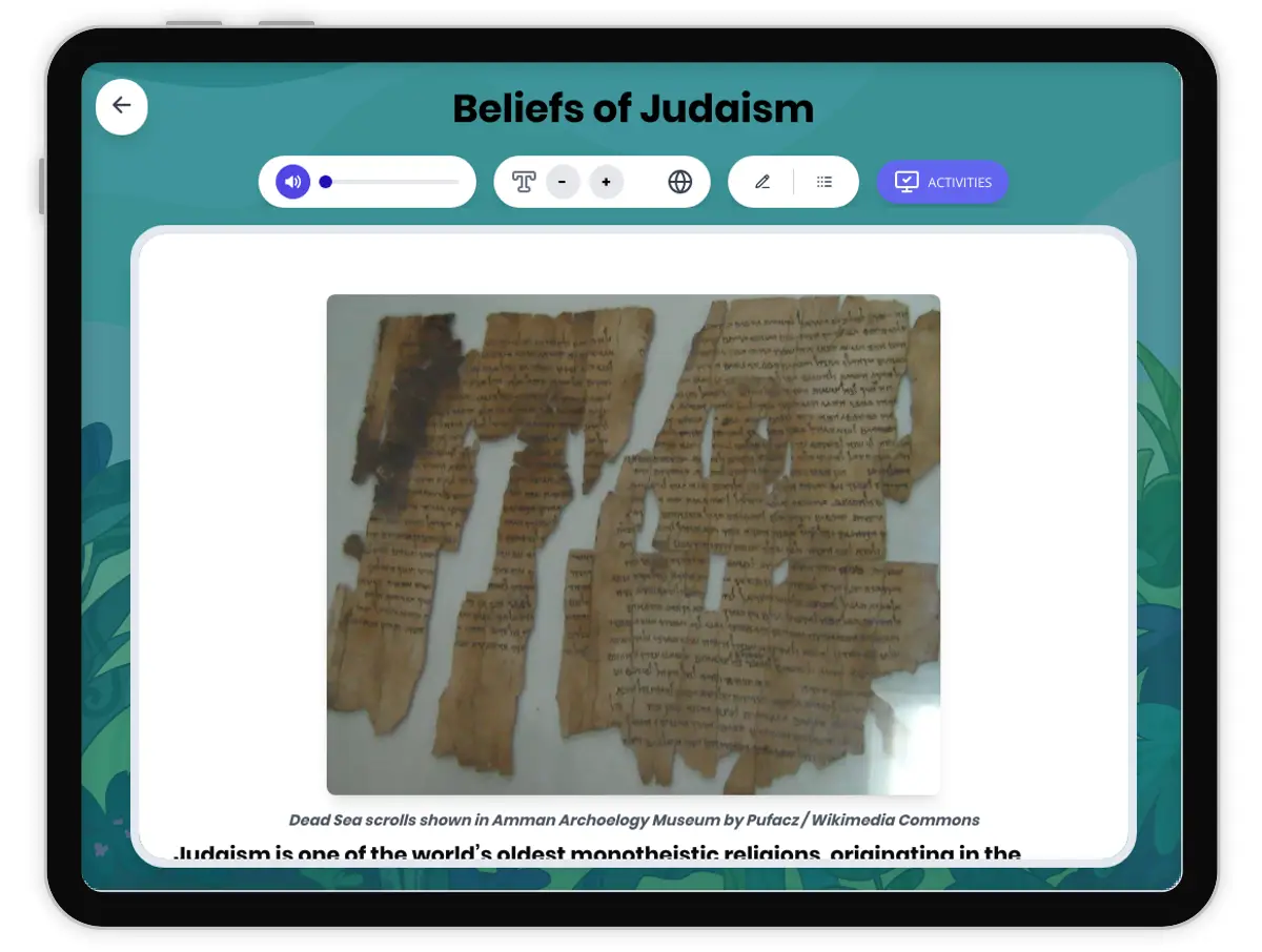 This passage examines the core beliefs of Judaism, focusing on law, justice, and ethics in ancient Israel. Students will learn how the Hebrews developed a unique religious and legal tradition, including the significance of the Torah, the Ten Commandments, and the role of prophets. The passage is supported by primary and archaeological evidence and explores how these beliefs impacted daily life, social hierarchy, and later civilizations. Activities include a reading comprehension quiz, writing prompts, graphic organizers, a timeline, and a Spanish translation. This resource is ideal for exploring ancient civilizations and religious traditions and aligns with CA HSS 6.3.3 and CCSS RH.6-8.1. It is suitable for history and social studies classes, offering read aloud audio and accessible language for all learners.