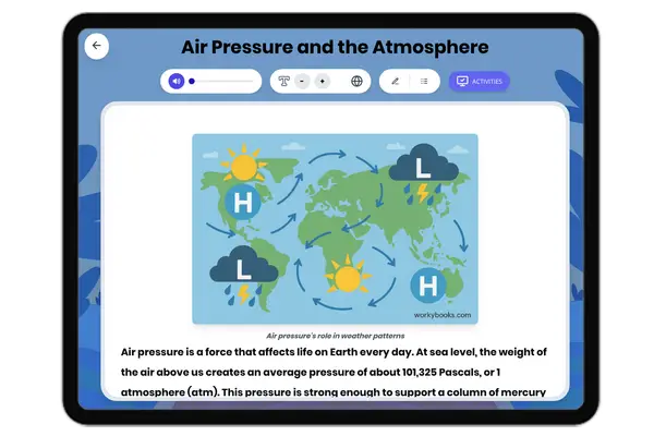 This comprehensive reading passage for grades 6-8 introduces Bernoulli's Principle, the concept that faster-moving fluids exert less pressure than slower-moving fluids. Aligned to NGSS MS-PS2-2, it begins by connecting the principle to observable phenomena, such as airplane lift and the movement of curveballs in sports. The passage offers a clear, mechanistic explanation of how differences in fluid speed cause pressure changes, leading to practical applications in aviation, sports, and household devices like atomizers and carburetors. Students will discover how Bernoulli’s Principle illustrates the interactions within systems, integrating related concepts such as force, velocity, and air pressure. The resource includes a glossary, differentiated and Spanish versions, a quiz, writing prompts, and graphic organizers to support all learners. Audio integration enhances accessibility, making it suitable for diverse classrooms. This passage is ideal for helping students understand the significance of physical science in daily life, technology, and engineering, while building critical thinking and language skills.