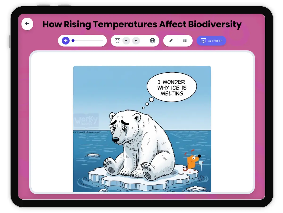 This engaging science reading passage for Grades 6-8 explains how rising temperatures impact biodiversity around the world. Students will learn about key concepts such as ecosystems, species adaptation, extinction, and food webs, with scientific vocabulary clearly defined and highlighted. The passage discusses real-world examples, like polar bears in the Arctic and coral reefs, to help students connect science to everyday life. It aligns with NGSS standards and includes a glossary, comprehension quiz, and writing activities to promote deeper understanding. The passage is available in both English and Spanish and includes audio integration to support diverse learners. This resource is ideal for classroom use, homework, or as a supplemental learning tool focusing on climate change and its effects on nature.
