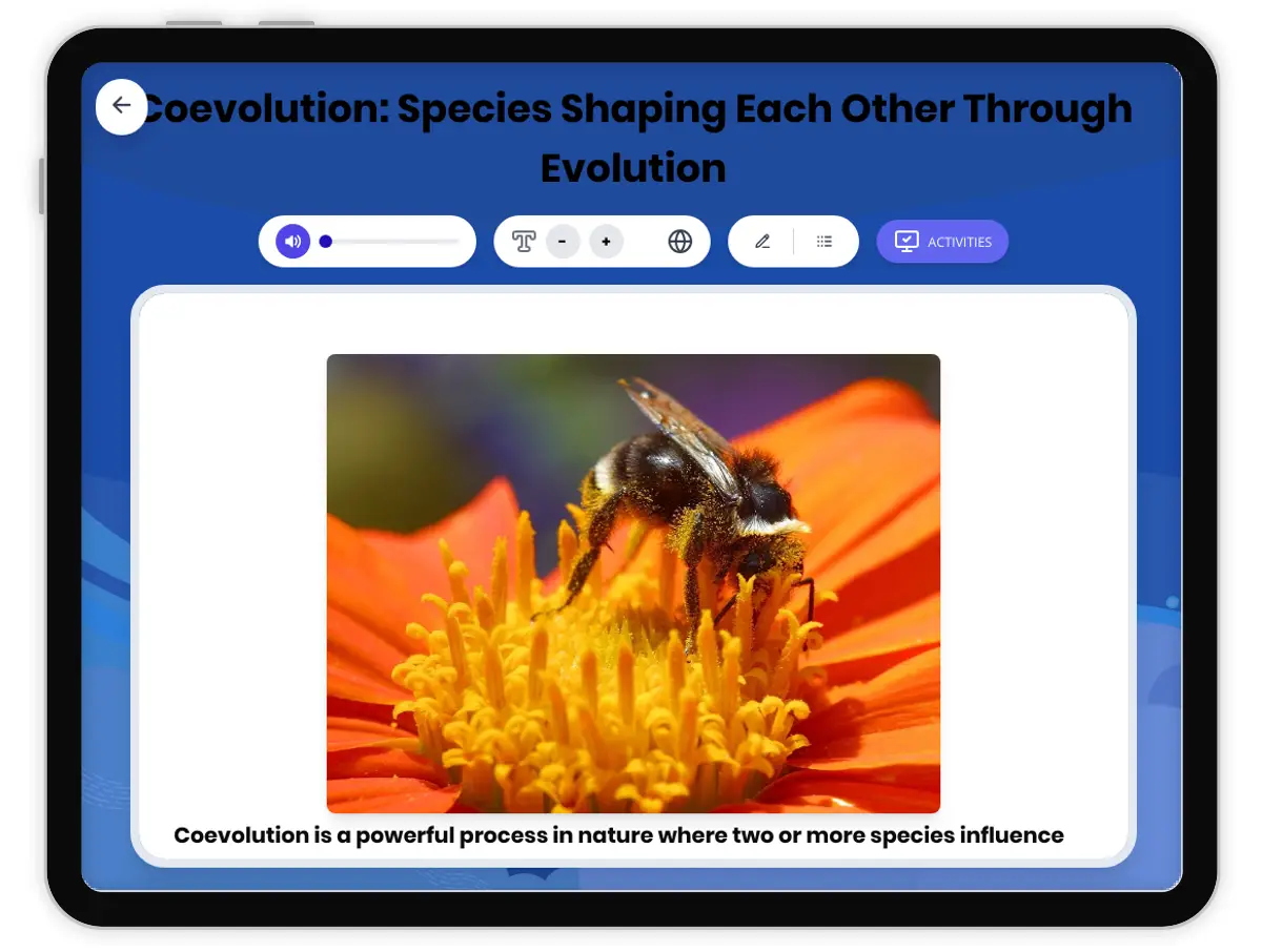 This passage for grades 6-8 introduces students to the concept of coevolution, where two or more species evolve in response to each other over time. Students learn how interactions like predator-prey, parasite-host, and mutualism drive evolutionary changes, using examples such as cheetahs and gazelles, milkweed and monarch butterflies, and plants and their pollinators. The passage aligns with NGSS standards MS-LS4-4 and MS-LS4-6, focusing on systems, mechanisms, and scientific thinking. Activities include a glossary, reading comprehension quiz, writing prompts, and graphic organizers for deeper engagement. Audio integration supports diverse learners. This resource helps students understand how interconnected life is and how changes in one species can lead to changes in another, impacting entire ecosystems.