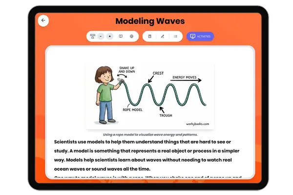 This 250-word reading passage introduces fourth-grade students to the important scientific practice of modeling waves. A...