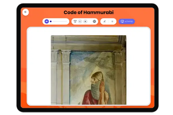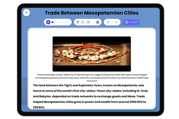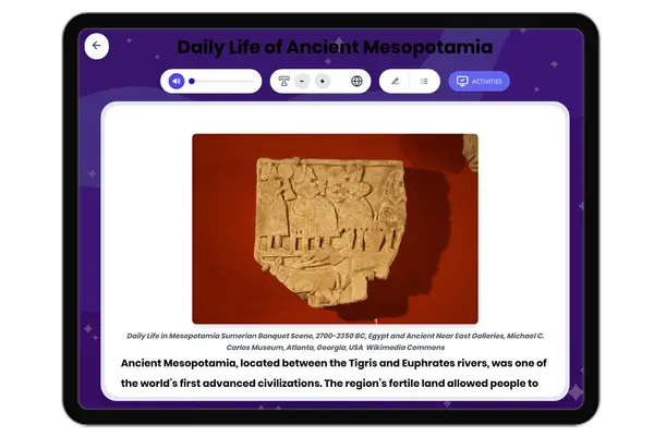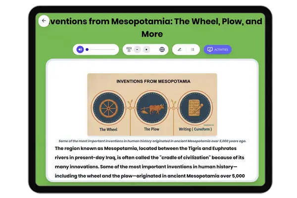 This engaging history reading passage explores the invention and development of cuneiform in ancient Mesopotamia, tracing its impact on civilization. Students will learn how Sumerians first developed this writing system using clay tablets, how scribes and rulers used it to organize society, and why writing transformed government, trade, and culture. The passage is rich with academic vocabulary and primary source examples, including references to the Epic of Gilgamesh and Hammurabi's Code. Activities are standards-aligned (CA HSS 6.2.2, TEKS 113.18.b.2A) and include a multiple-choice quiz, writing prompts, graphic organizers, timeline, and glossary. The resource also provides a simplified reading version and full Spanish translation to support all learners. Read aloud audio and public domain imagery further enhance comprehension and engagement.