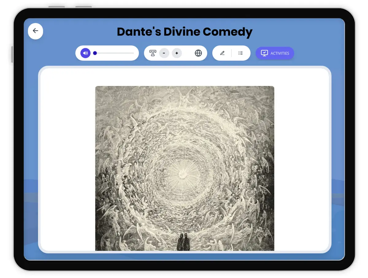 This comprehensive history reading passage examines Dante's Divine Comedy, a key literary masterpiece of the Italian Renaissance. Students will learn about Dante Alighieri's journey through Inferno, Purgatorio, and Paradiso, the use of Italian vernacular, and the poem's lasting impact on European literature and moral philosophy. The passage includes references to primary sources, analysis of cause-and-effect, and connections to broader themes in world history. Designed for middle school learners, this resource aligns with CA HSS 7.8.2 and CCSS RI.6.3 standards, and includes a glossary, multiple-choice quiz, writing prompts, graphic organizers, and a timeline. With both English and Spanish versions, as well as read aloud audio, this passage helps students analyze world history texts and understand the significance of the Renaissance.