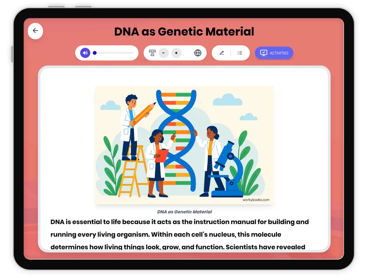 This engaging, standards-aligned science passage introduces middle school students (grades 6-8) to DNA as the molecule responsible for storing genetic information. The passage covers the structure of DNA—including its double helix shape, sugar-phosphate backbone, and the four nitrogenous bases (adenine, thymine, guanine, and cytosine) that pair specifically. Students will learn how DNA is located in the nucleus of cells, how it replicates before cell division, and the significant historical contributions of scientists like Watson, Crick, Franklin, and Wilkins. Real-world applications and connections to health, technology, and biology are explored, supporting NGSS standard MS-LS3-1. The resource includes a simplified version, Spanish translations, vocabulary support, and differentiated activities. Audio integration is included to support diverse learners.
