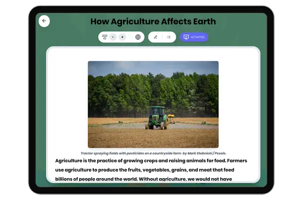 This 400-word informational reading passage introduces fifth-grade students to the environmental impacts of agriculture,...