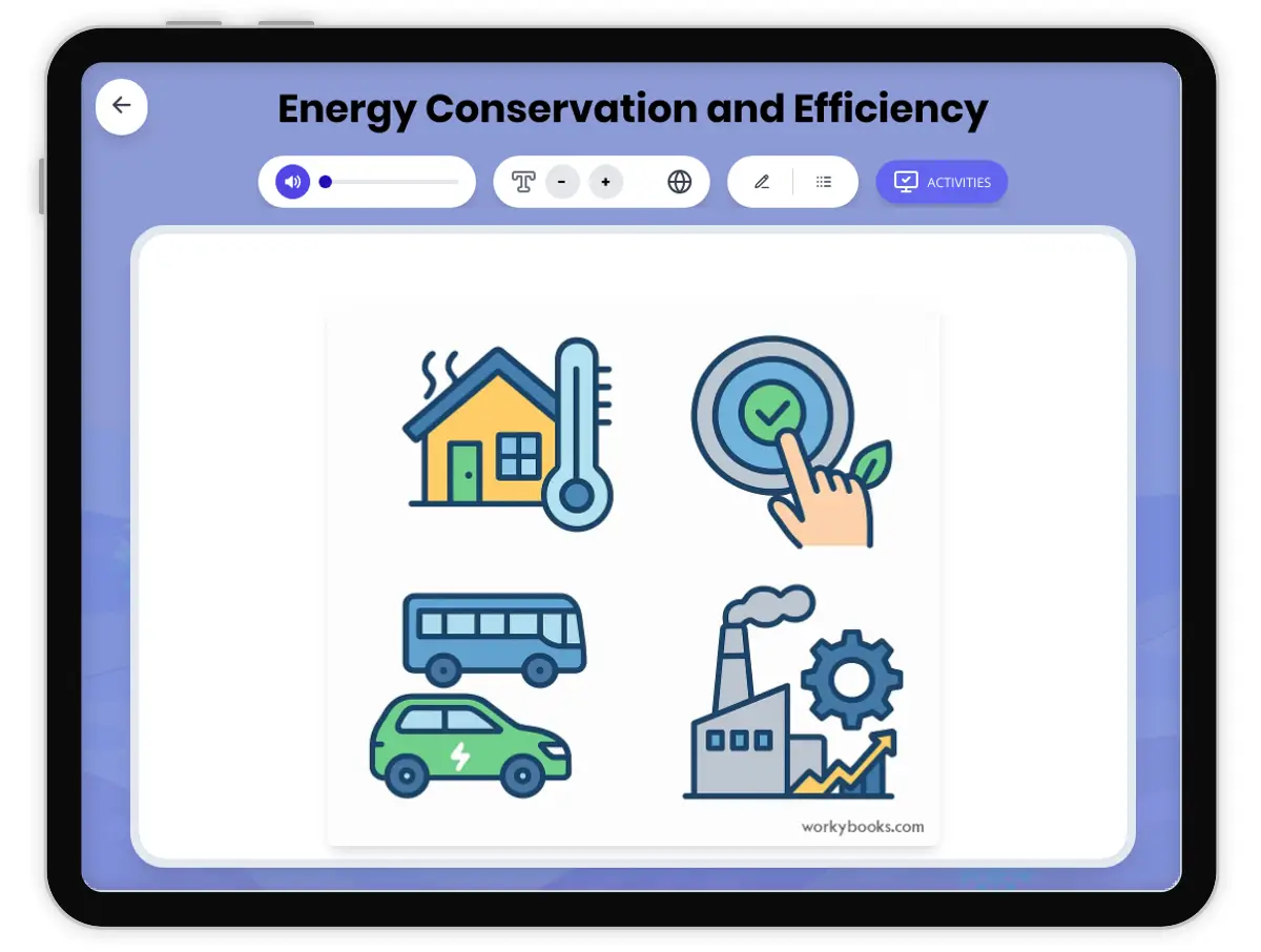 This middle school science passage explores the essential concepts of energy conservation and energy efficiency, aligned with NGSS standards MS-PS3-4, MS-ESS3-3, and MS-ESS3-4. Students will learn the difference between reducing energy use (conservation) and improving the way energy is used (efficiency), through real-world examples from homes, transportation, and industry. The passage examines mechanisms such as insulation, efficient appliances, smart thermostats, and public transit, and discusses the impact of personal actions and energy audits. Connections are made to larger scientific principles, emphasizing how reducing energy demand is as important as using clean energy sources. Activities include a glossary, multiple-choice quiz, writing prompts, and graphic organizers to deepen understanding. This resource is audio-integrated, making it accessible for all learners and supporting science literacy development.