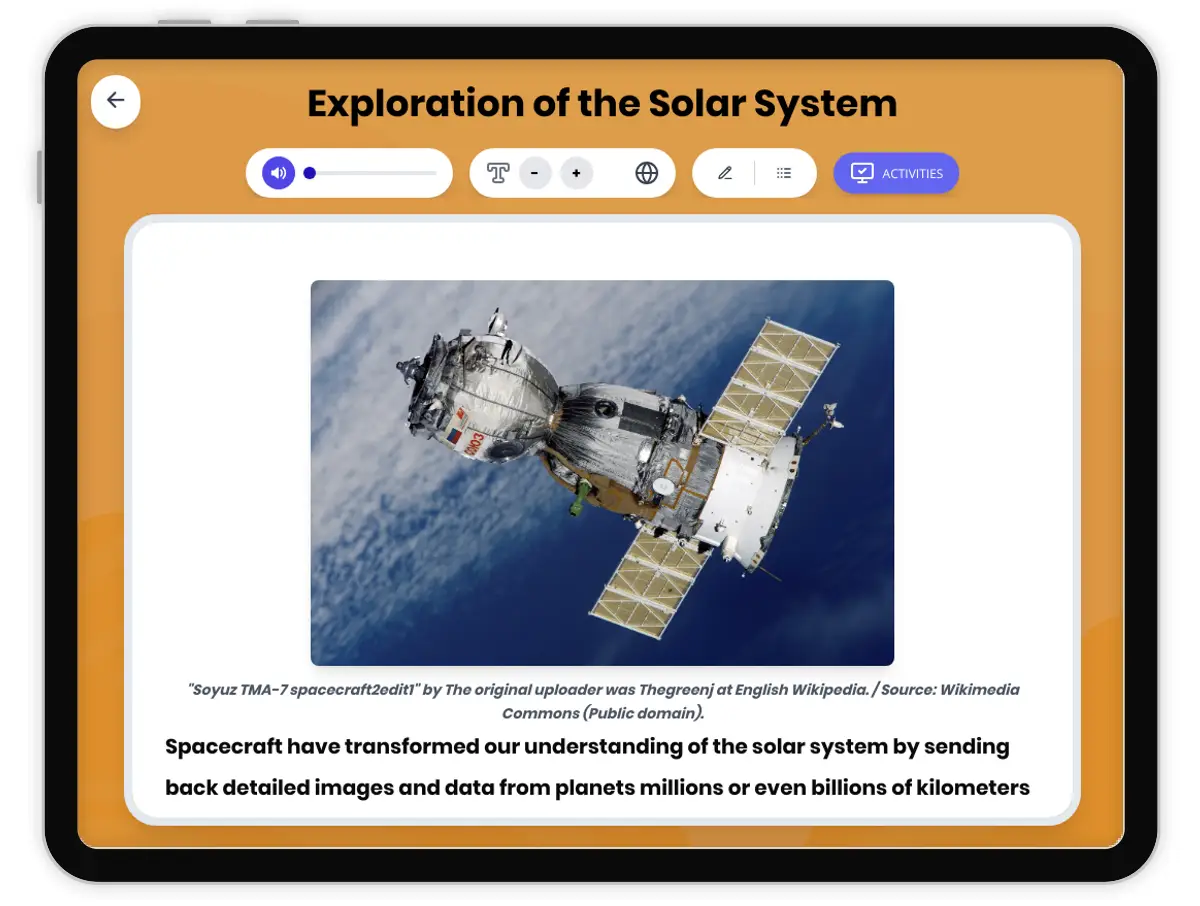 This comprehensive passage for grades 6-8 examines how humans explore the solar system, aligning with NGSS standards MS-ESS1-3 and MS-ETS1-1. Students will learn about different mission types (flyby, orbiter, lander/rover) and how these approaches have advanced our knowledge of both inner and outer planets. The passage details major missions (like Mariner, Voyager, Cassini, and Perseverance), addresses the challenges of distance, communication, and power, and highlights the role of technology and international cooperation. Real-world applications and benefits, such as technological innovation and inspiration, are discussed. Embedded glossary terms support academic vocabulary, and audio integration is available to enhance accessibility for all learners.