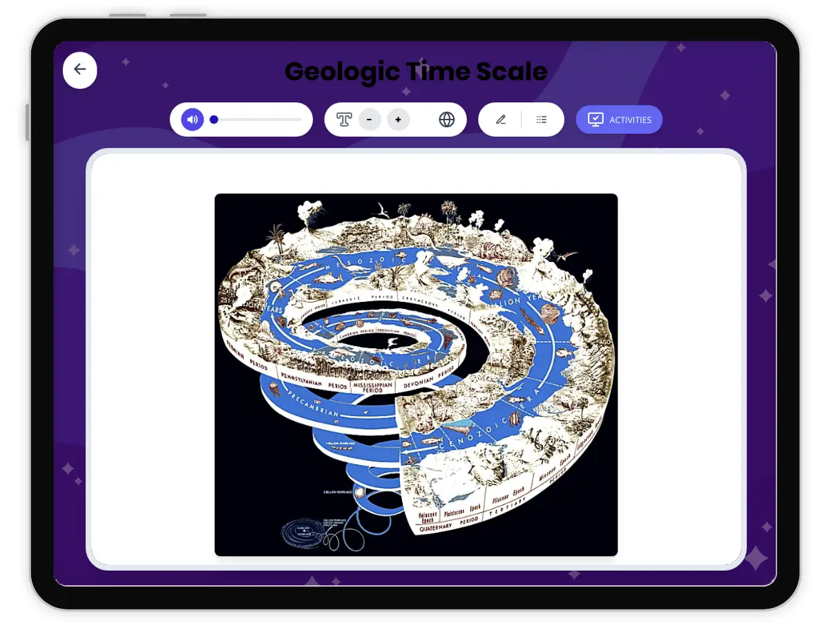 This educational passage for grade 4-5 students introduces the concept of geologic time on Earth, helping learners understand how our planet has changed over millions of years. The passage explains key scientific terms like fossils, eras, and extinction, and describes how scientists use clues from rocks and fossils to learn about Earth's history. Students will discover why geologic time is divided into different eras and periods, and how major events, such as the rise of dinosaurs or the extinction of certain species, have shaped life on our planet. The passage is aligned with NGSS science standards and supports vocabulary development with a glossary. Activities include a multiple-choice quiz and writing prompts that encourage critical thinking and connections to real-world science. Integrated audio and a Spanish translation make this resource accessible for diverse learners. The content is ideal for classroom or home learning and is designed to spark curiosity about geology and Earth's past.