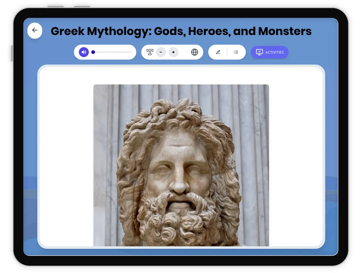 This reading passage explores the fascinating world of Greek mythology, including the stories of gods, heroes, and legendary monsters. Students will learn about the Olympian gods, the influence of myths on ancient Greek society, and how these stories reflected the values and beliefs of the time. The passage uses primary sources and archaeological evidence, referencing famous myths such as the Labors of Heracles and the Minotaur of Crete. Key academic vocabulary is woven throughout to support historical thinking skills. This resource includes a glossary, multiple-choice quiz, writing activities, graphic organizers, a timeline, and both English and Spanish versions. Designed to meet CA HSS 6.4 and CCSS RH.6-8.1 standards, it also includes a read aloud audio function. The content encourages students to analyze cause and effect, use evidence, and understand the significance of mythology in shaping Greek culture and social hierarchy.