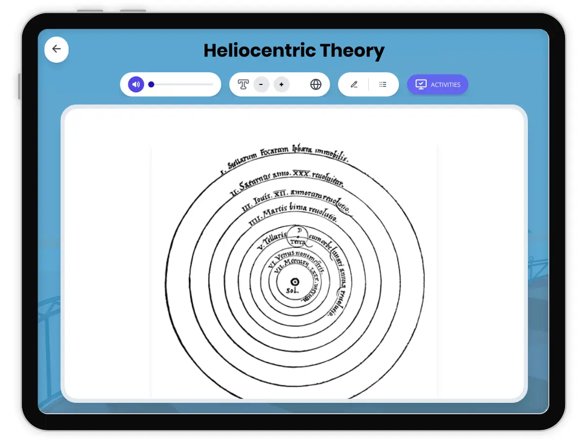 This engaging history reading passage explores the heliocentric theory and its impact during the Renaissance. Students will compare the geocentric and heliocentric models, examine the evidence supporting a sun-centered system, and analyze how this shift changed the relationship between science and religion. The passage emphasizes cause-and-effect, change over time, and connections to broader world history themes. It aligns with CA HSS 7.10 and Common Core RH.6-8.1-4 standards. Activities include multiple-choice and writing questions, graphic organizers, and a timeline, fostering critical thinking and disciplinary literacy. Both English and Spanish versions are provided, along with a simplified version for accessibility. This resource is ideal for world history classrooms looking for rigorous, standards-aligned content with read aloud audio and Spanish translation.