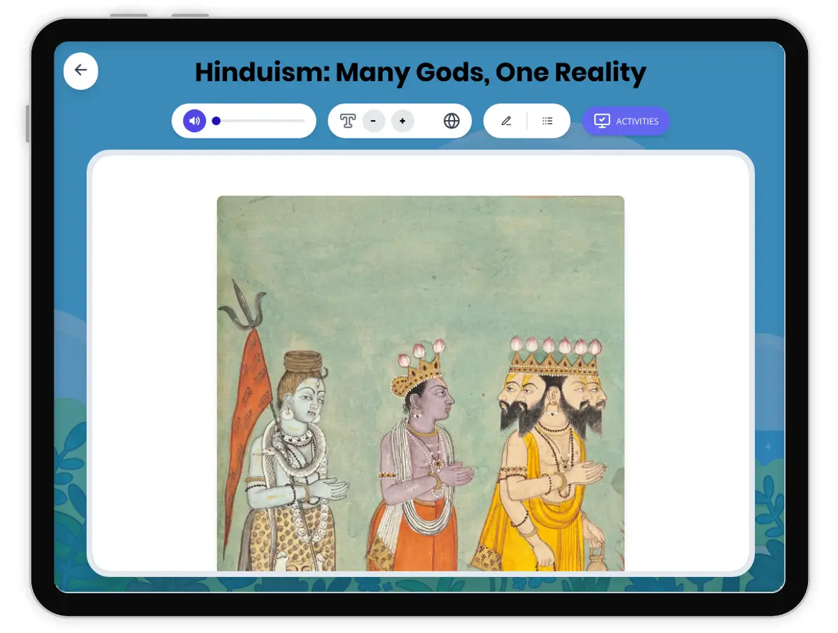 This passage explores the origins, beliefs, and lasting impact of Hinduism, one of the world's oldest religions. Students will learn about key concepts such as Brahman, dharma, karma, and reincarnation, and how these ideas shaped ancient Indian civilization and daily life. The text references primary sources like the Vedas and archaeological discoveries such as ancient temples from the Indus Valley Civilization. Activities include a glossary, multiple-choice quiz, writing prompts, and graphic organizers, helping students analyze historical cause-and-effect, connect beliefs to social structure, and understand change over time. The passage aligns with CA HSS 6.5 and TEKS 6.21 history standards, and ELA-Literacy.RI.6.1, RI.6.4, RI.6.7. A Spanish translation and read aloud audio are included, supporting multilingual and diverse learners. This resource is ideal for classrooms exploring ancient world religions and civilizations.