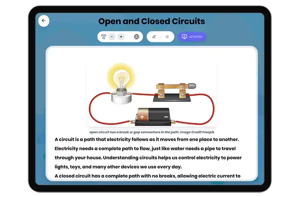 This engaging 250-word reading passage teaches Grade 4-5 students about open and closed circuits, aligned with NGSS 4-PS...