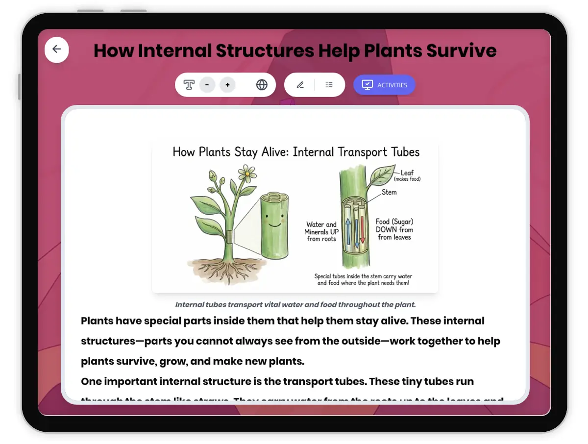 How Internal Structures Help Plants Survive — Reading Comprehension