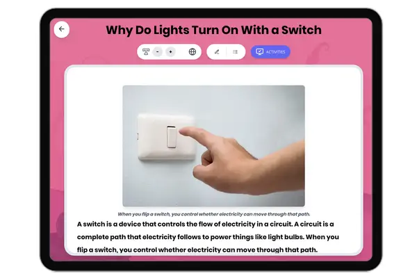 This 250-word reading passage introduces fourth-grade students to the fundamental concept of how switches control electr...