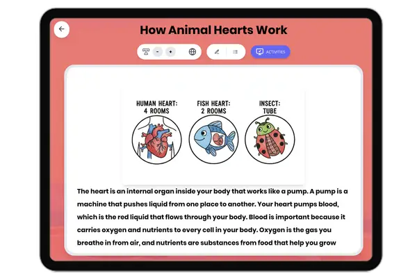 This 250-word audio-integrated reading passage introduces fourth-grade students to the essential function of the heart a...