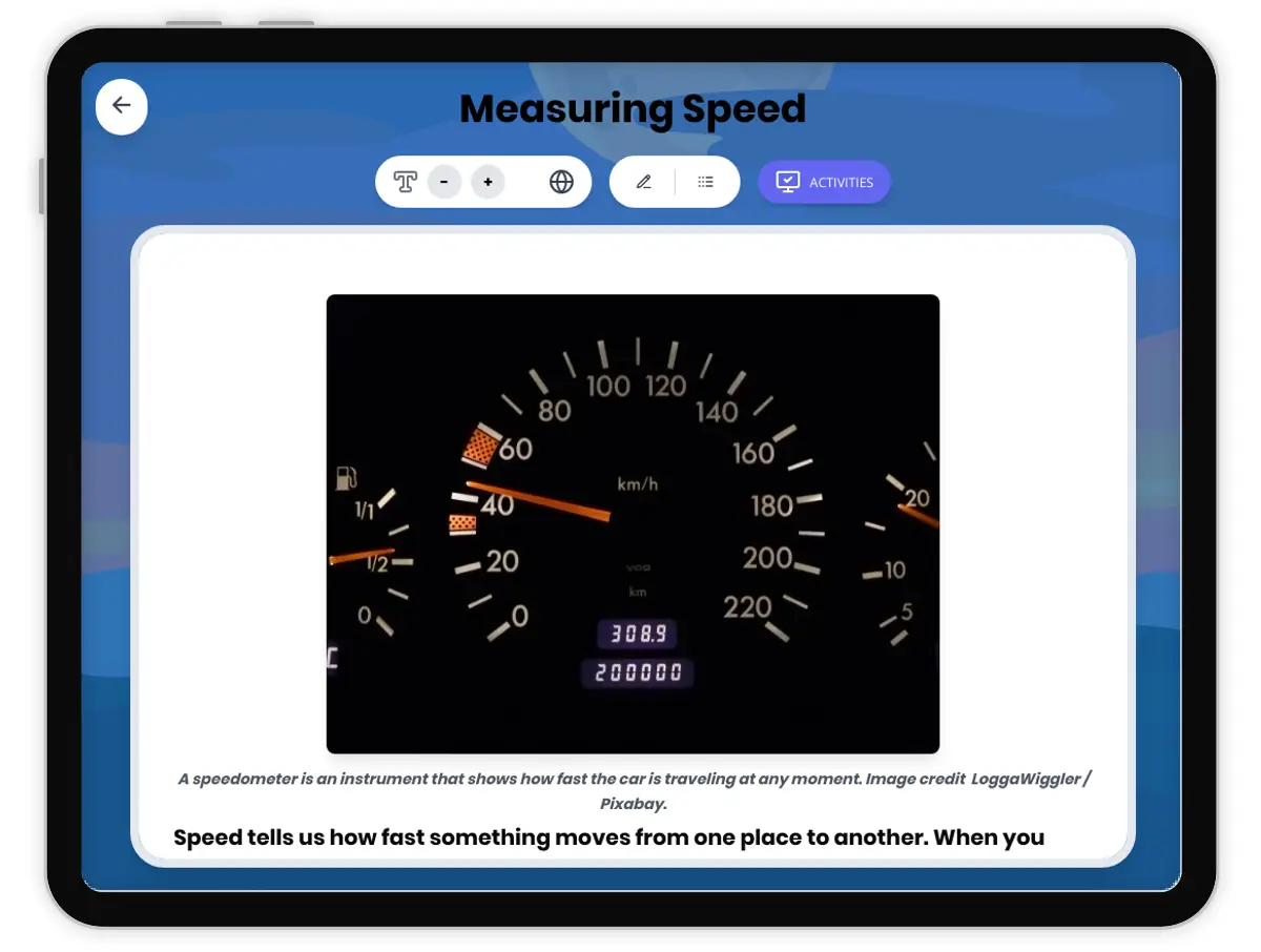Speed is a measurement that tells us how fast something is moving. Scientists measure speed to understand and compare the motion of different objects, from walking people to speeding rockets. Knowing how to measure speed helps us plan trips, design vehicles, and study how things move in our world.