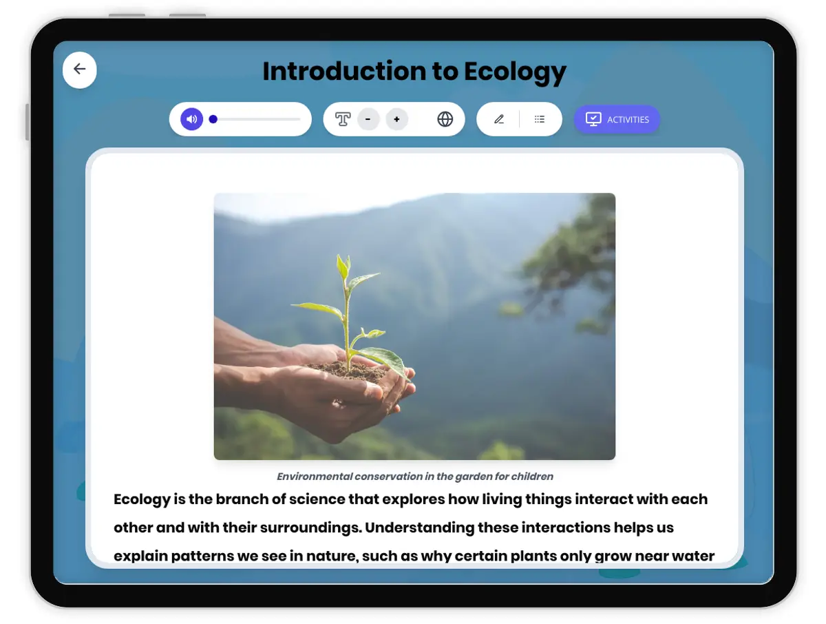 This informational science passage introduces middle school students to the field of ecology, aligned with NGSS MS-LS2-1. Students will learn how organisms interact with each other and with nonliving environmental factors. The passage defines and explains terms such as organism, population, community, ecosystem, biome, and biosphere, while also distinguishing biotic and abiotic factors. Real-world examples, such as forest and pond ecosystems, help illustrate these concepts. The text also discusses the importance of ecological research and introduces career paths like ecologists, conservation biologists, and wildlife managers. Designed for grades 6-8, the passage is accessible, engaging, and features built-in audio and Spanish support. Activities include comprehension questions, writing prompts, and graphic organizers to reinforce understanding and develop scientific thinking skills.