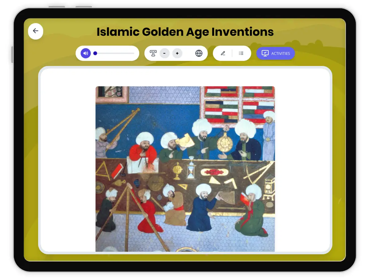 This world history reading passage explores the remarkable inventions and scientific advances made in the medieval Islamic world, including algebra, surgical instruments, windmills, and paper-making. Students will learn how Islamic scholars preserved and expanded on ancient Greek knowledge, and how these innovations influenced later societies in Europe and beyond. The passage aligns with CA HSS 7.2 and CCSS RH.6-8.1 standards, and includes a glossary, activities, and both English and Spanish versions. It is designed to develop historical understanding, reading comprehension, and critical thinking skills, and is accompanied by read aloud audio, graphic organizers, and a multiple-choice quiz. The passage is suitable for students studying the Middle Ages and the global contributions of Islamic civilization.