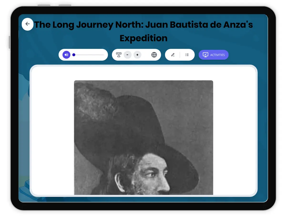 This engaging U.S. history reading passage introduces students to Juan Bautista de Anza and his historic expedition from Mexico to California in the late 1700s. Students will learn how Anza led families and soldiers through tough lands to help Spanish settlers reach new homes in San Francisco. The passage highlights bravery, teamwork, and the importance of exploration using simple language and clear cause-and-effect structure. Activities include a glossary, multiple-choice quiz, writing prompts, timeline, and graphic organizer. The content aligns with C3 Framework and Common Core standards, supporting literacy and historical thinking skills. A Spanish translation and read aloud audio are included, making this resource accessible for diverse learners. Keywords include Spanish colonization, expeditions, California, colonial America, and U.S. history.