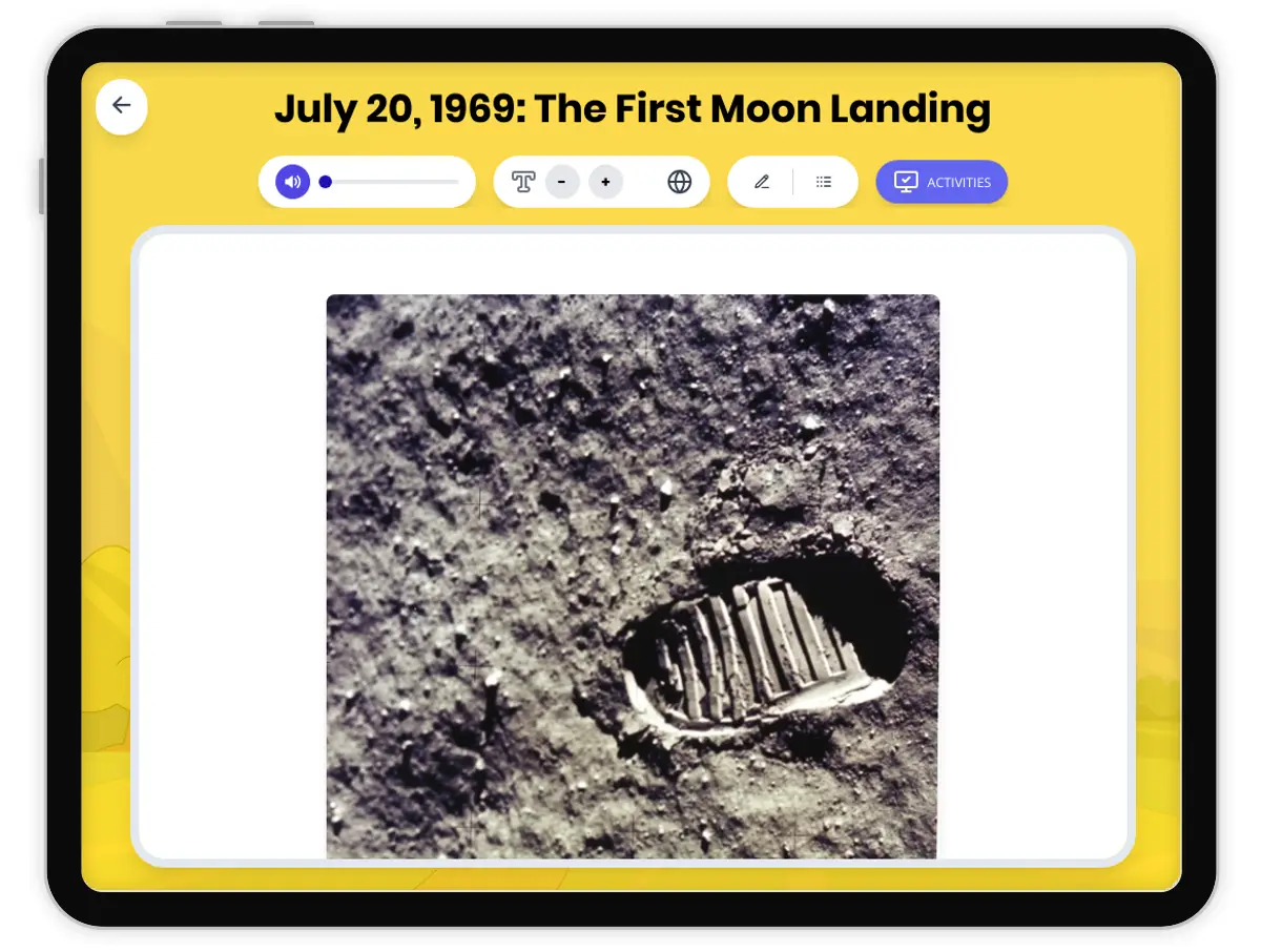 This comprehensive history reading passage explores the historic first Moon landing on July 20, 1969, led by Neil Armstrong and the Apollo 11 crew. Students will learn about the background of the space race, the events leading up to Armstrong’s famous first step, and why this achievement was so significant for humanity and world history. The passage integrates academic vocabulary, analysis of primary sources such as Armstrong’s iconic quote, and context about the Cold War and technological competition between the United States and the Soviet Union. The resource aligns with the California History-Social Science Framework (CA HSS 7.11) and CCSS.ELA-Literacy.RI.6.1, RI.6.3, RI.6.4. It includes a Spanish translation, differentiated reading version, glossary, timeline, multiple-choice quiz, writing activities, and graphic organizers, making it ideal for diverse learners and classroom use. Read aloud audio is also available.