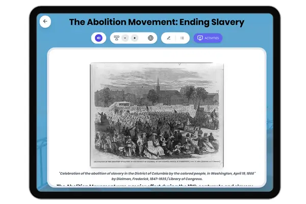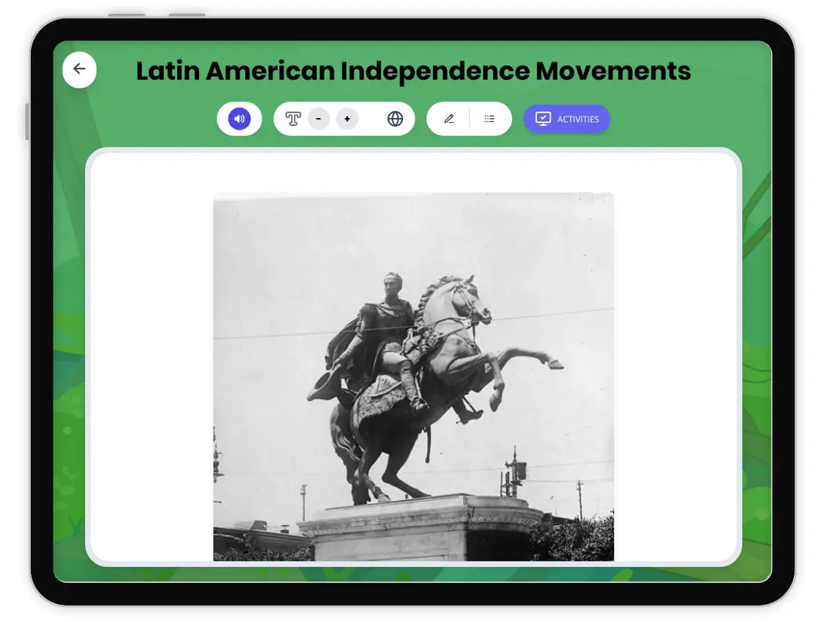 This reading passage presents a detailed exploration of the Latin American Independence Movements during the 19th century, focusing on the revolutionary leaders Simón Bolívar and José de San Martín. Students will learn how these leaders, inspired by Enlightenment ideas and other global revolutions, led the charge to end Spanish and Portuguese colonial rule across South America. The text examines the causes and effects of the independence movements, highlights the importance of geography and social hierarchy, and references primary sources for context. Activities include multiple-choice questions, writing prompts, and graphic organizers to develop critical thinking. This resource aligns with HSS 6.7, RH.6-8.1, and RH.6-8.2, and features read aloud audio and a complete Spanish translation.