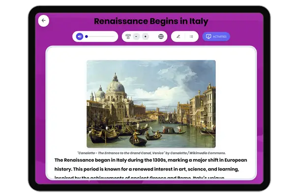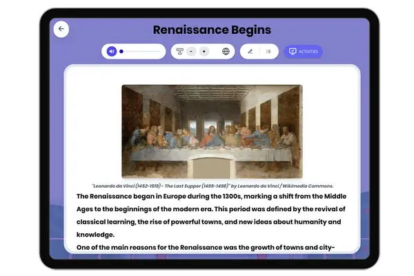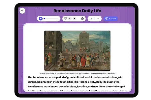 This rigorous history reading passage explores life in Europe during the Middle Ages, focusing on the structure of feudal society, the powerful influence of the Church, and the limited scientific and artistic development that characterized the era. Designed for middle school students, the text aligns with CA HSS 7.6 and CCSS RI.6.3 standards, challenging readers to analyze the factors that shaped medieval life and understand how these elements set the stage for the transformative changes of the Renaissance. The passage includes primary and archaeological examples, cause-and-effect relationships, and connections to geographic and social contexts. Supporting materials include a Spanish translation, glossary, multiple-choice quiz, writing activities, two graphic organizers, and a suggested timeline. Read aloud audio is also available, making this an engaging and accessible resource for all learners.