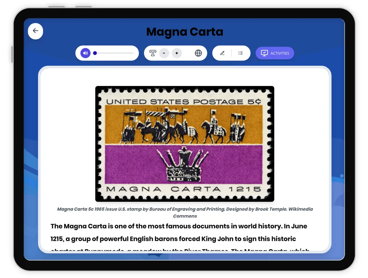 This passage explores the historical significance of the Magna Carta, focusing on how English barons compelled King John to sign this landmark document in 1215. Students will learn about the causes and effects of the Magna Carta, its connection to social hierarchy, and its enduring influence on legal systems. The reading includes analysis of primary sources, a chronological timeline, and glossary of key terms. The passage meets CA HSS 7.6.5 and CCSS RH.6-8.1 standards, and is accompanied by a Spanish translation, read aloud audio, and comprehension activities. Designed for middle school learners, this resource encourages students to analyze cause-and-effect relationships and understand the Magna Carta's lasting impact on world history.