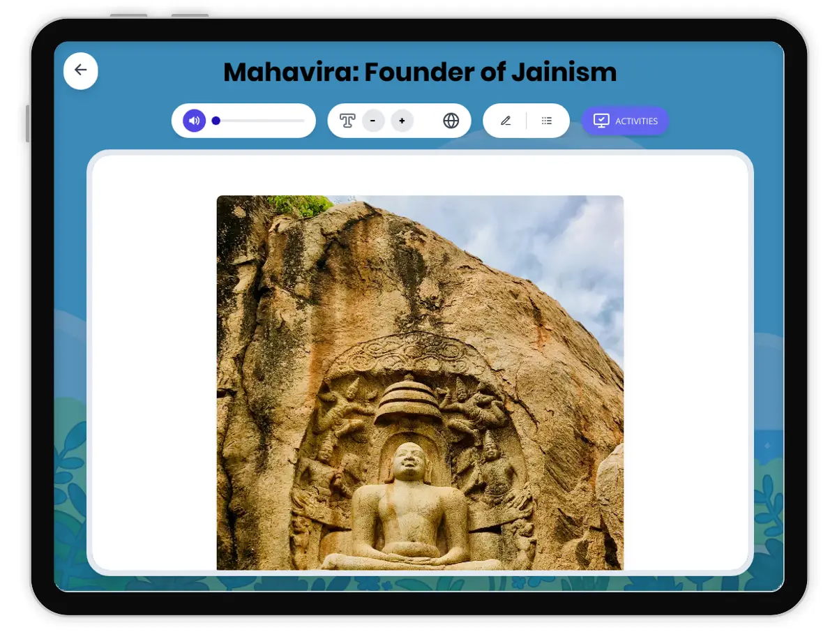 This comprehensive history passage explores Mahavira, the founder of Jainism, and his impact on Ancient India. Students will learn about Mahavira's early life, the principles of Jain philosophy such as ahimsa (nonviolence), and how Jainism shaped Indian society. The passage uses primary sources and archaeological evidence to illustrate the development and spread of Jainism. Students will analyze cause-and-effect relationships, changes over time, and the significance of Mahavira’s teachings in the broader context of Indian history. Activities include a glossary, timeline, reading comprehension quiz, writing prompts, graphic organizers, and Spanish translation. This resource aligns with CA HSS 6.1.3 and CCSS RI.6-8.1, supporting historical thinking skills and ELA standards. Read aloud audio and accessible activities make it ideal for diverse learners.