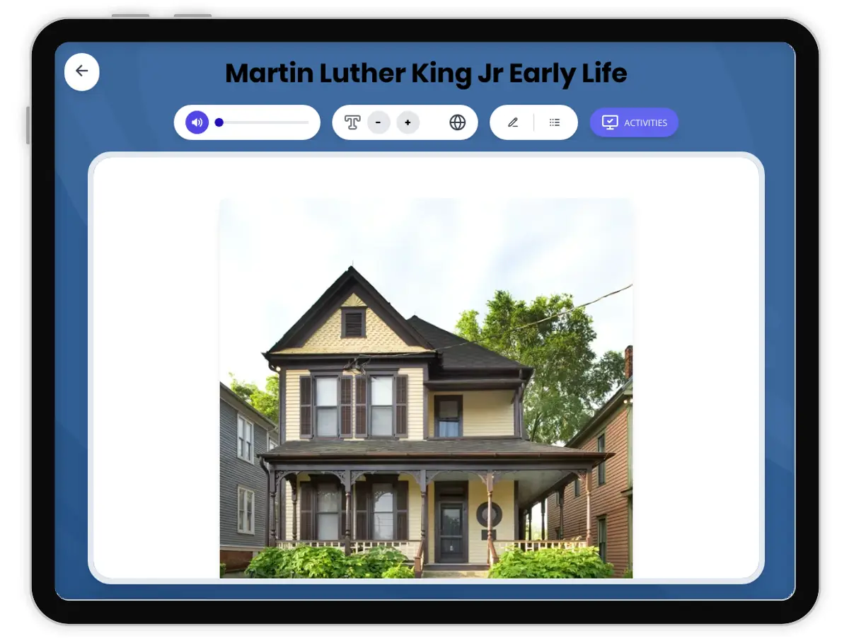This history reading passage explores the early life of Martin Luther King Jr., focusing on how his upbringing in Atlanta, Georgia, influenced his later leadership in the Civil Rights Movement. The passage examines his experiences with segregation, the powerful role of his family’s religious tradition, and the impact of his education. Students will analyze how these formative elements shaped King's identity and prepared him for activism. The resource includes a challenging passage, simplified and Spanish-translated versions, a glossary of key terms, comprehension and writing activities, and graphic organizers. Audio read aloud enhances accessibility. Aligned to HSS 11.10.2 and CCSS.RI.6-8.1, RI.6-8.3, this resource helps students build historical reasoning, vocabulary, and ELA skills while examining the complexities of one of America’s most influential leaders.