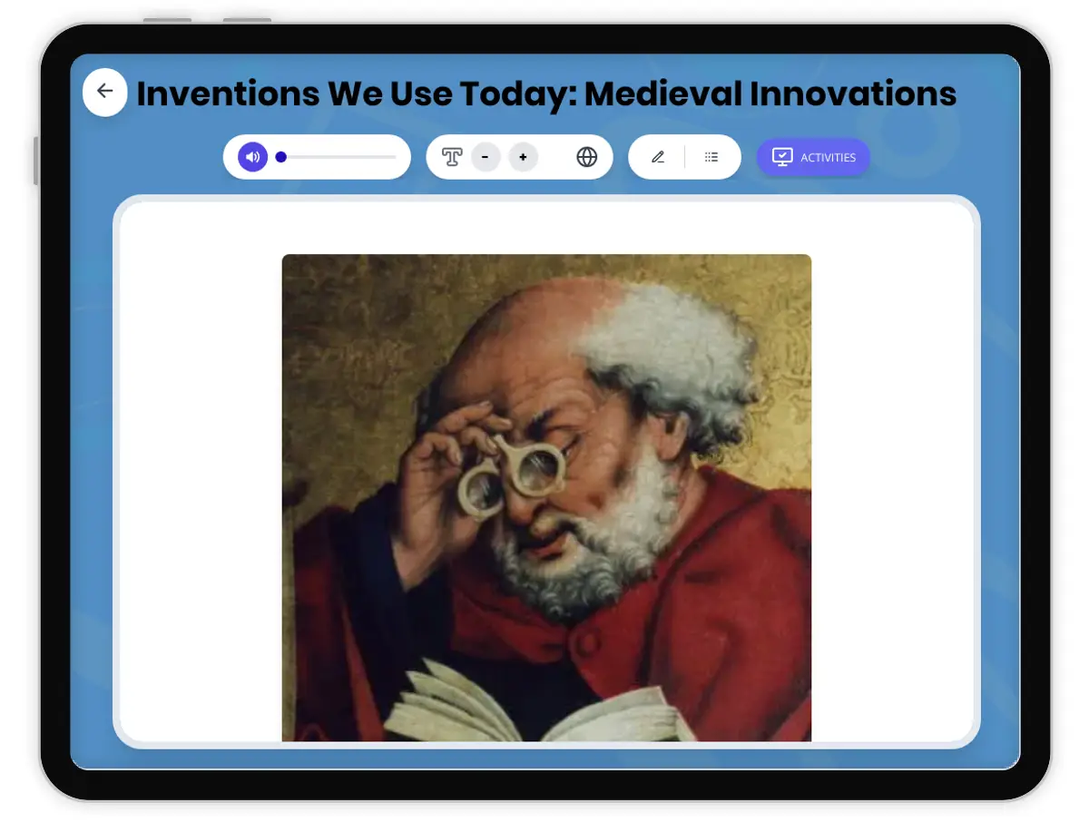 This world history reading passage analyzes key inventions from the Middle Ages that are still part of our daily lives, including eyeglasses, clocks, windmills, and universities. Students will explore how these medieval innovations emerged in specific geographic and social contexts, and how they demonstrate both change and continuity over time. The passage addresses why these inventions were important, how they spread, and their wider impact on society, using primary source evidence and rigorous historical analysis. Activities include a glossary, multiple-choice quiz, writing prompts, graphic organizers, and a timeline to support historical thinking. This resource is aligned to CA HSS 7.2 and CCSS RH.6-8.2, and offers both a standard and differentiated reading passage, along with a Spanish translation and read aloud audio for accessibility.