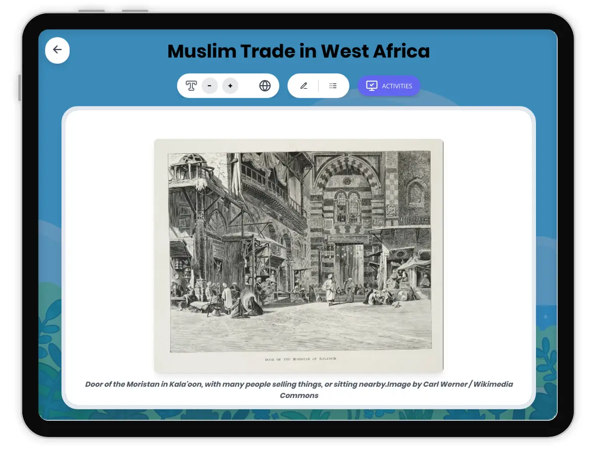 This passage explores how Muslim traders played a crucial role in connecting North and West Africa during the medieval period. It details the spread of goods like gold and salt, the introduction of Islam, and the impact on local societies. Students will learn about the rise of trading cities, the influence of geography, and how cultural and economic exchanges shaped civilizations. The text is aligned with HSS 6.2 and RH.6-8.1 standards, supporting analysis of historical sources and understanding of world world history. The passage includes a glossary, reading comprehension and writing activities, graphic organizers, and a Spanish translation. Students can listen to the passage with audio and use visual resources such as a public domain image of a trans-Saharan caravan. This resource helps students analyze cause and effect in history, understand continuity and change, and connect regional histories to global trends.
