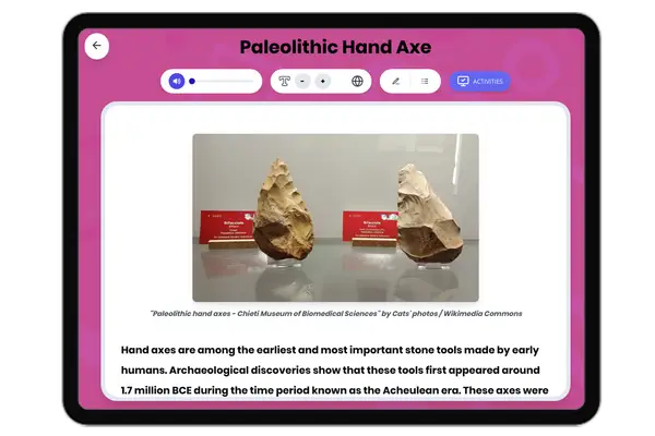 This engaging ancient history passage explores the development and significance of Acheulean hand axes, one of the earli...