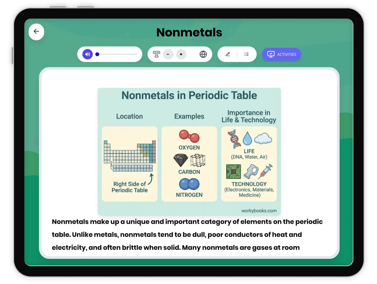 Nonmetals in Periodic Table — Reading Comprehension