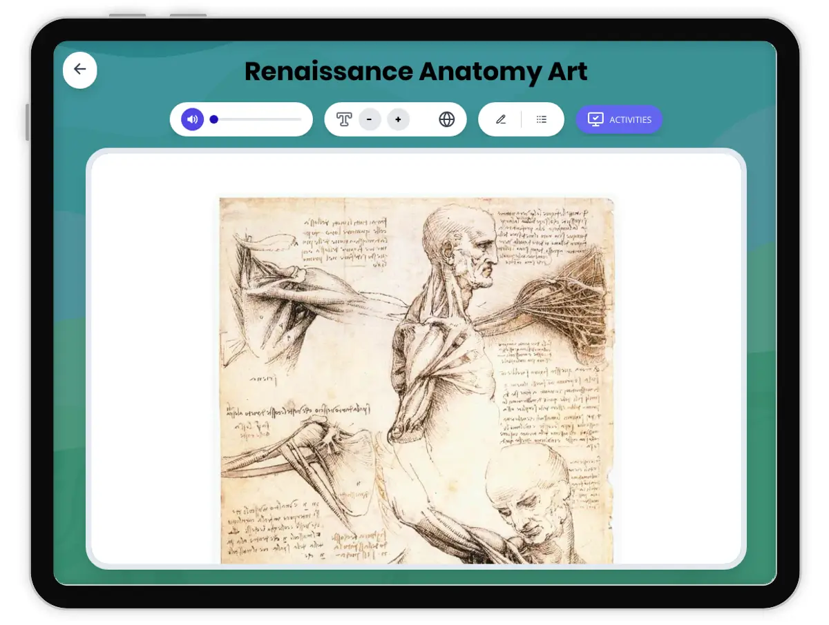 This engaging passage explores the intersection of art, science, and society during the Renaissance through the lens of anatomy studies. Focusing on artists like Leonardo da Vinci, students learn how dissection and direct study of the human body led to revolutionary advances in both artistic technique and medical understanding. The text examines specific primary sources, such as Leonardo’s anatomical sketches, and traces cause-and-effect relationships between new knowledge and the realism seen in Renaissance art. Students are challenged to analyze the importance of these developments within their geographic and historical context, connecting the Renaissance to broader world history themes. This resource aligns with CA HSS 7.8.5 and CCSS RI.6.3 and includes a Spanish translation, glossary, comprehension activities, and a read aloud audio for accessibility.