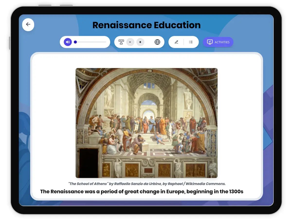 This engaging history reading passage examines the transformation of education during the Renaissance and its impact on society. Students will learn about humanist education, the study of classical literature, and the ideal of the 'Renaissance man.' The passage includes primary source examples, historical context about Italian city-states like Florence, and the influence of scholars such as Leonardo da Vinci and Petrarch. Designed for world history classrooms, this passage supports CA HSS 7.8.2 and CCSS RI.6.3 standards. Activities include a quiz, writing prompts, graphic organizers, and a Spanish translation, along with a read-aloud audio option. Keywords like Renaissance, humanism, and classical studies help students analyze change over time and understand why the Renaissance remains significant in global history.