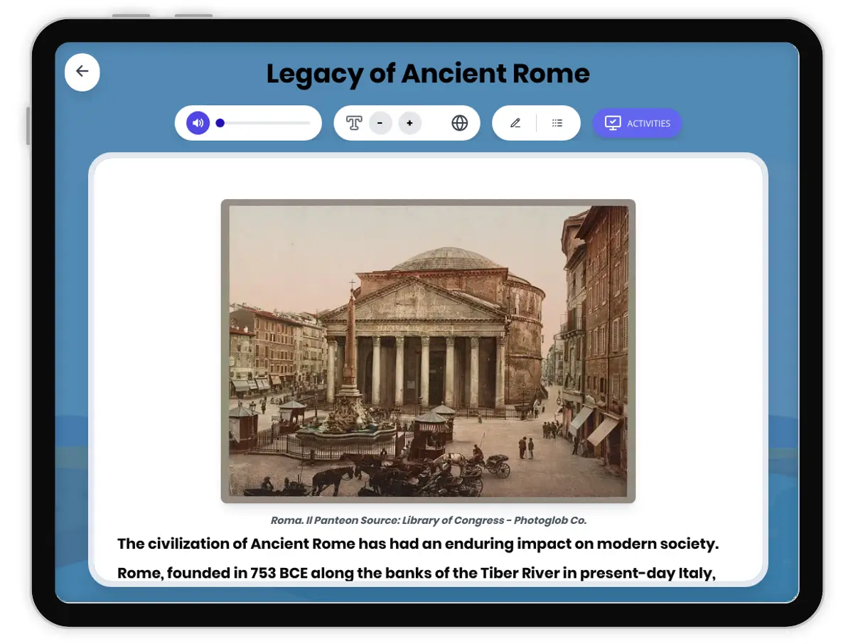 This passage explores the profound legacy of Ancient Rome and how its beliefs, innovations, and systems continue to shape the modern world. Covering Roman law, government structure, engineering feats, and the spread of the Latin language, students will analyze how Rome’s influence can be seen in today’s legal systems, architecture, and vocabulary. The passage aligns with CA HSS 6.7, addressing Roman contributions and their global impact, and CCSS RH.6-8.2, supporting key ELA skills such as citing evidence and summarizing. Activities include a reading comprehension quiz, writing prompts that focus on causation and significance, graphic organizers, a timeline, a glossary, and Spanish translations of both the standard and differentiated texts. A public domain image enriches the content, and a coloring page prompt encourages creative engagement. This resource is ideal for classrooms seeking a rigorous, engaging, and accessible ancient history reading passage with read aloud audio and Spanish translation options.