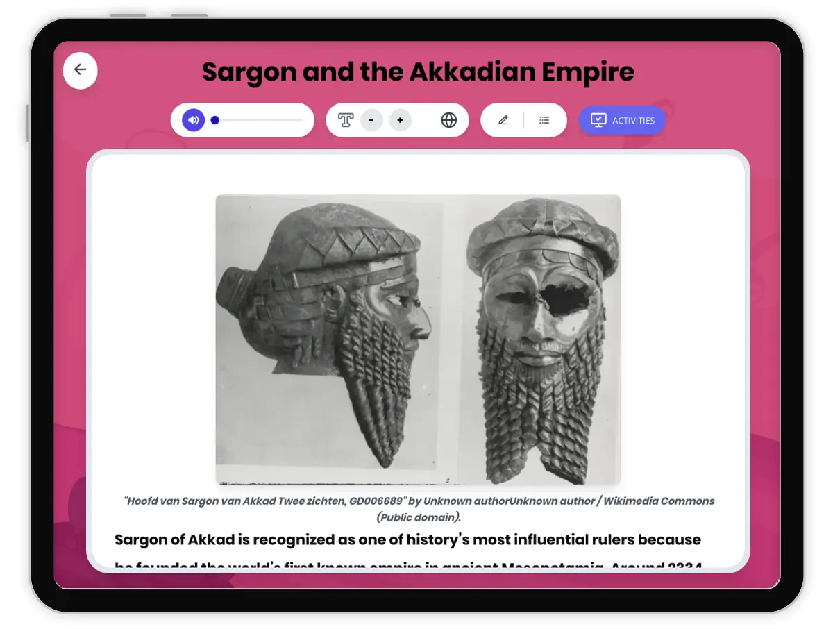 This engaging history reading passage explores the life and legacy of Sargon of Akkad, the founder of the world's first known empire in ancient Mesopotamia. Students will learn how Sargon rose from humble origins to unite the city-states of Sumer through military conquest and innovative government, establishing the Akkadian Empire around 2334 BCE. The passage integrates key vocabulary such as 'city-state,' 'conquest,' and 'cuneiform,' and examines the historical context, primary sources, and the impact of Sargon's reign on later civilizations. Activities include comprehension questions, a writing task, graphic organizers, timeline, and a glossary to support close reading and historical analysis. The lesson is aligned with CA HSS 6.2.2 and CCSS RI.6.1, and provides read aloud audio and Spanish translation for accessibility.